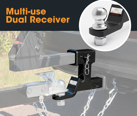 Features Heavy duty thick steel construction Bouns hitch ball with 5000 lbs capacity Multi-use:extra 2”x2”receiver allows you to mount a cargo carrier or bike rack at the same time Black powder coated finish Channel-style mounting system...Regular price $79.85Regular price $79.85 -