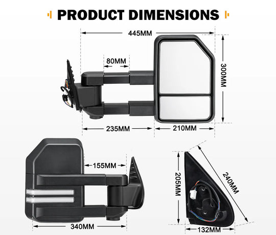 Extendable Towing Mirrors Gen1 For Volkswagen Amarok 2009-2023