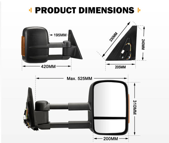 Extendable Towing Mirrors Gen1 For Toyota Landcruiser 70-79 Series 1984-Current