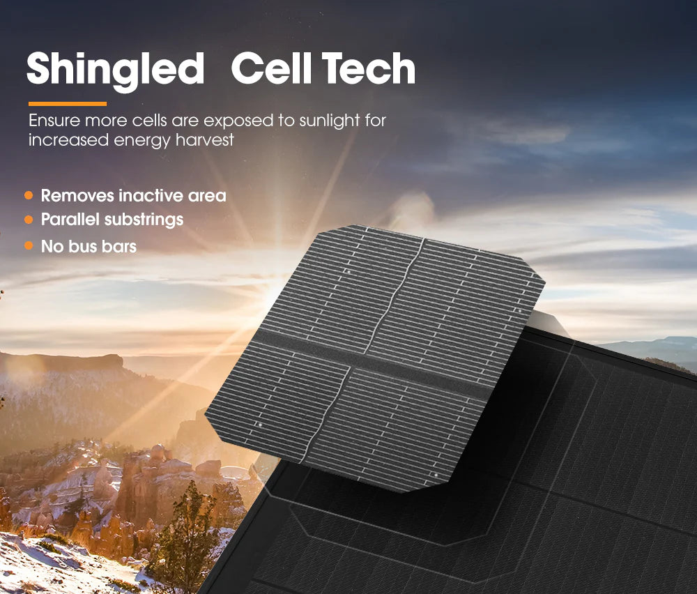• Shingled Cell Tech: Shingled solar panels do away with the busbars, ribbons and soldered joints found in conventional solar panel, reducing busbar failures.