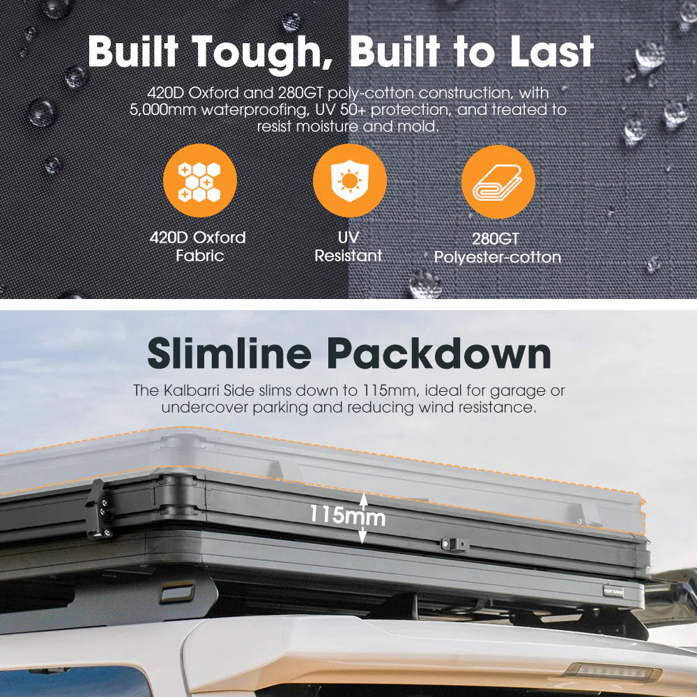 • Light Shielding Tech: The Kalbarri Side features silver lining that keeps the morning sun at bay, ensuring it stays cool and dark until you're ready to greet the day.