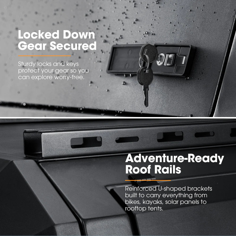 • Locked Safety: With sturdy locks and keys included, you can confidently leave your gear inside the canopy, knowing it’s protected when you’re off exploring or resting.